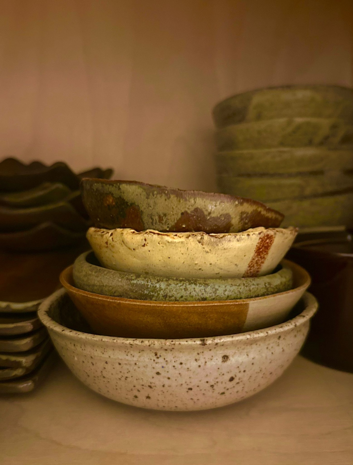 Japanese Bizen-Yaki Stoneware: Raw, earthy ceramics fired in wood-burning kilns for 7 days. No two pieces are identical.